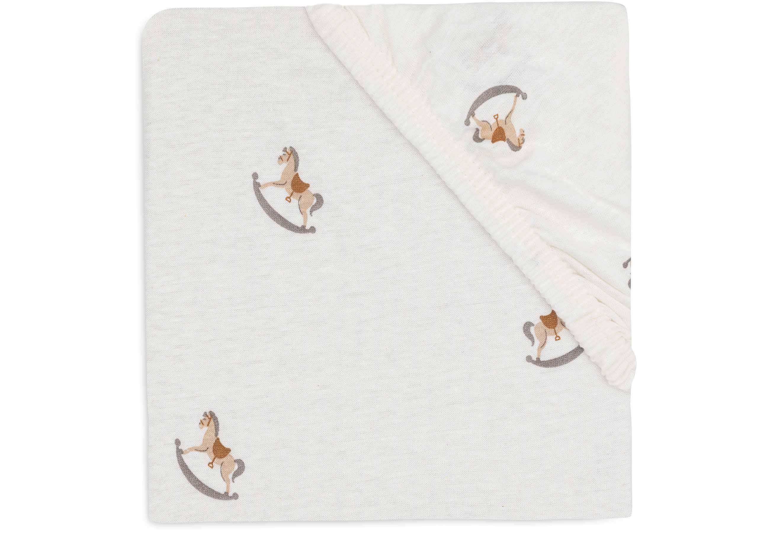 Protégez facilement le matelas de votre bébé ou de votre jeune enfant avec ce joli drap-housse. L'imprimé plein de chevaux à bascule égaie toute la chambre.! Grùce aux élastiques situés dans chaque coin, le drap-housse se ferme sans effort autour du matelas. Vous pouvez parfaitement combiner le drap-housse avec les couvertures du thÚme Check Knit. Disponible en différentes tailles pour le berceau et le lit d'enfant. Astuce:un drap-housse pour berceau s'adapte aussi parfaitement à un matelas à langer ou à une nacelle.
